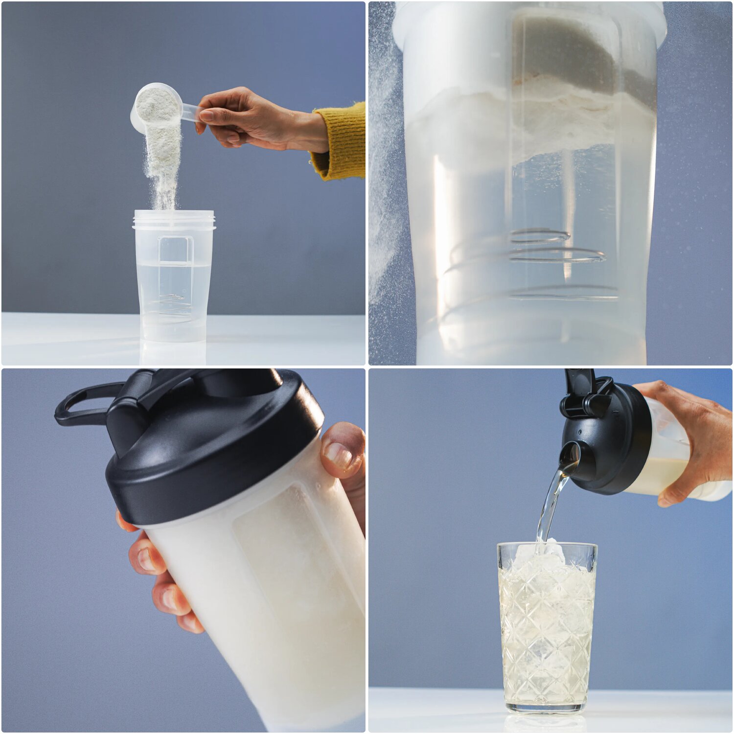 Mélangez 1 dose (27 g) avec 300 ml d’eau froide dans un shaker. Secouez bien jusqu’à dissolution complète. Pour un goût optimal, laissez la mousse retomber brièvement avant de déguster.